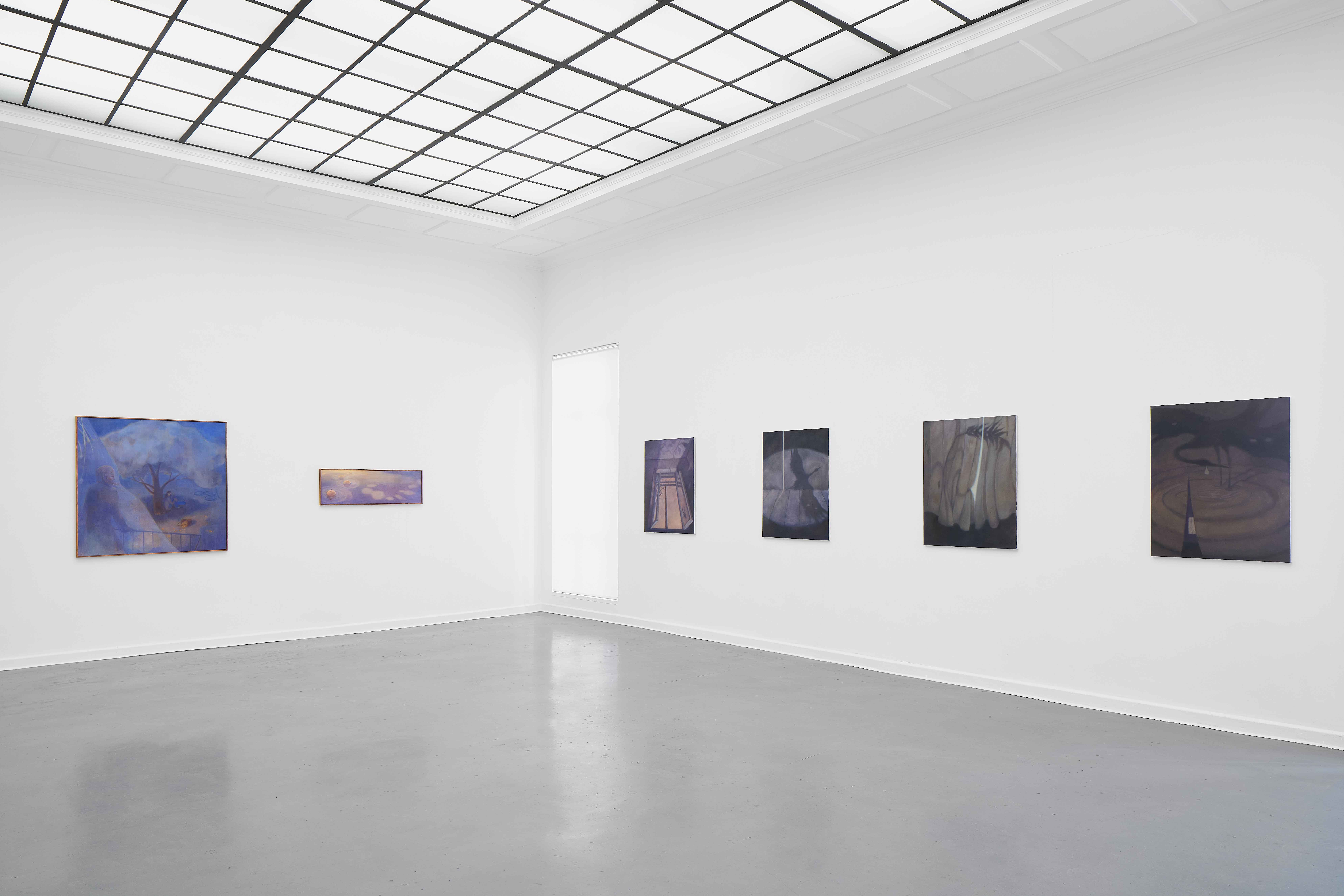 The effect of otherwise dark spaces being staged with deliberate light sources creates an obstacle for a certainty to form about the exact circumstances and happenings. Similarly, the usage of windows by Kovtun demonstrates more of the compositional deliberateness of these works. Windows as a framing device act as a barrier, keeping inner and outer worlds apart, united only by atmosphere and luminescence. However, this convention also binds Kovtun’s settings to a fixed and stable ground, adding another layer as to how these works are more reality-making than reality-bending.